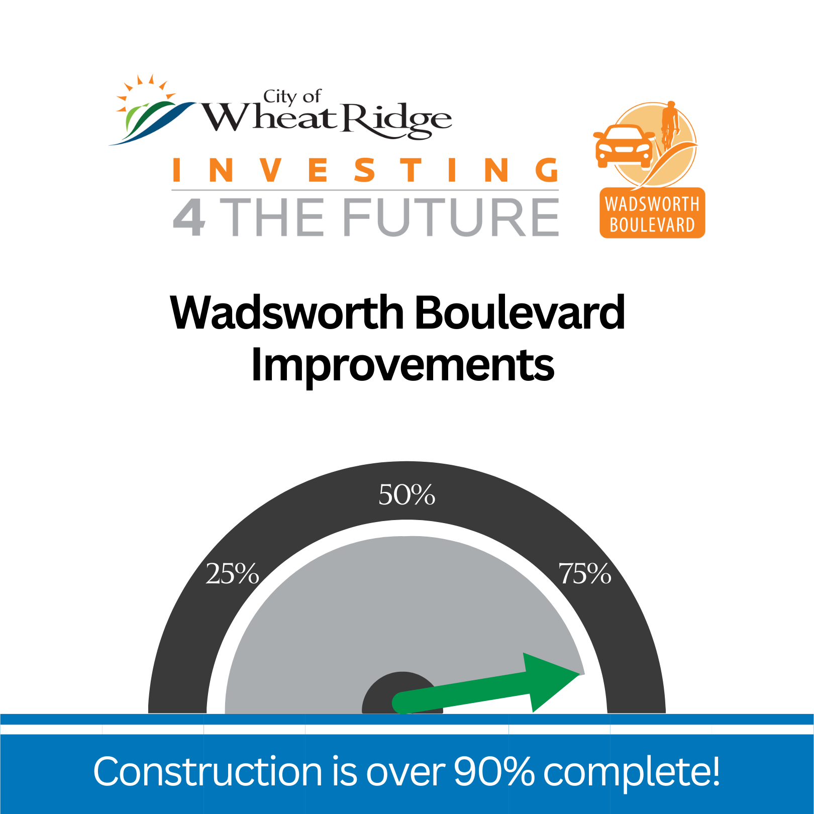 This project includes modernizing and improving Wadsworth from 35th Avenue to I-70 with efficient and safe intersection designs, safer entrances and exits for vehicles accessing businesses, a continuous sidewalk on the west, and a bike/pedestrian path on the east side of Wadsworth from 35th Avenue to the Clear Creek Trail.