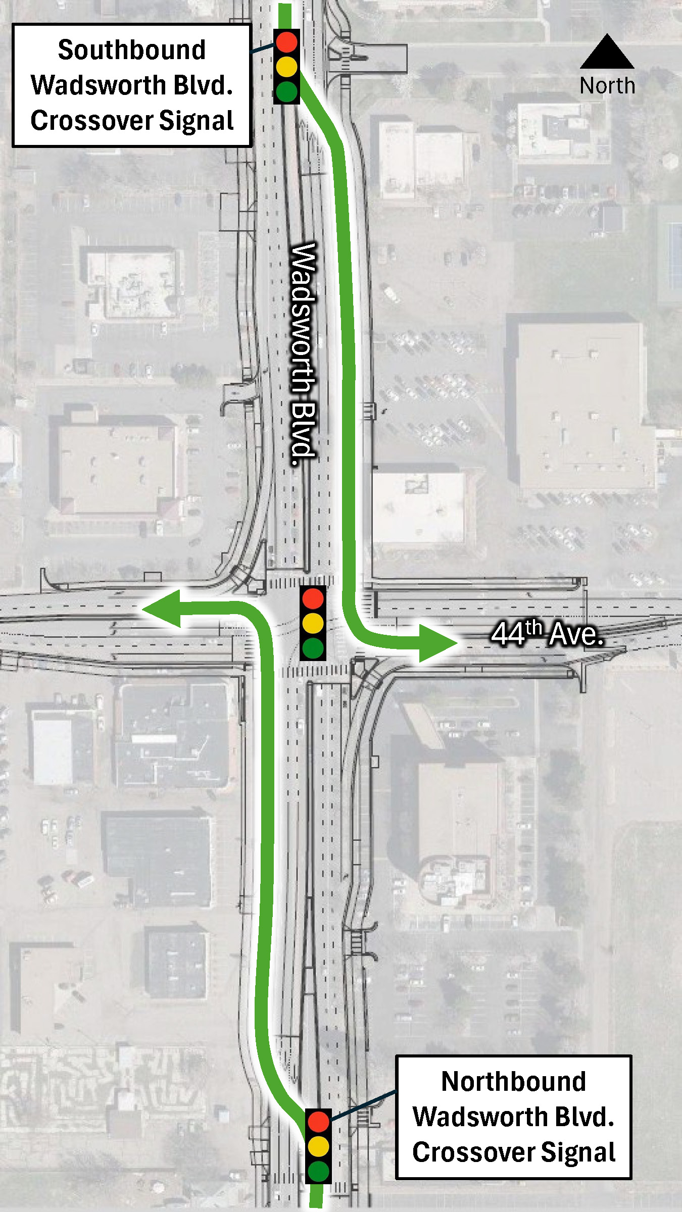 Prior to construction, crash data showed that Wadsworth had a crash rate more than four times higher than the statewide average for similar corridors. CFIs help reduce both the frequency and severity of crashes by eliminating left-turn conflicts at the main intersection and easing overall congestion.